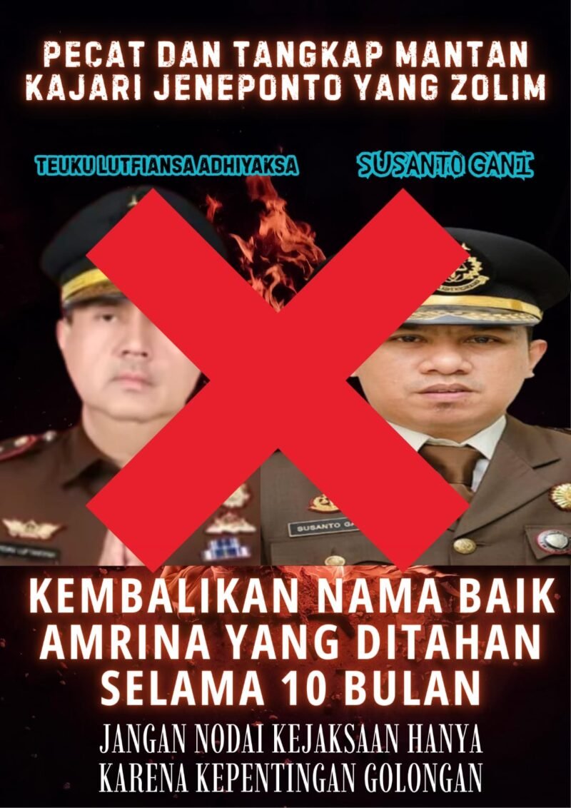 1. Mendesak pemecatan dan penangkapan dua mantan Kepala Kejaksaan Negeri (Kajari) Jeneponto yang diduga terlibat dalam kasus korupsi pupuk subsidi senilai Rp6 miliar.