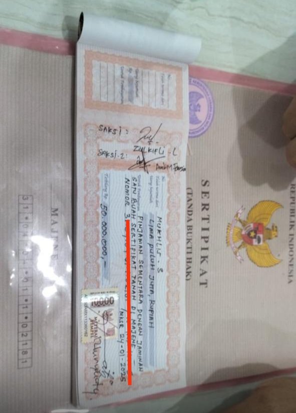 Perjanjian Hutang ini di jembatani oleh Zulkifli sehingga meminta ibu dari saudara Fauzi untuk menandatangani perjanjian tersebut, dan fauzi sebagai penjamin dengan Jaminan Surat Berharga, sehingga saudara Muhlis menganggap ibu dari Fauzi lah yang berhutang kepada dirinya,