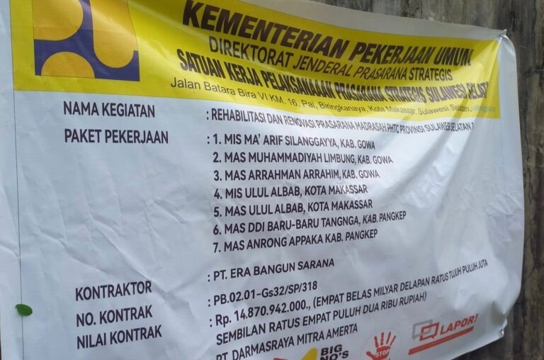anatomikata.co.id, Gowa – Pembangunan Gedung Rehabilitasi dan Renovasi MAS Arrahman Arrahim di Kabupaten Gowa kembali menjadi sorotan. Proyek senilai Rp 14,8 miliar yang dikerjakan PT Era Bangun Sarana itu diduga kuat menggunakan material yang tidak memenuhi standar teknis bangunan pendidikan.