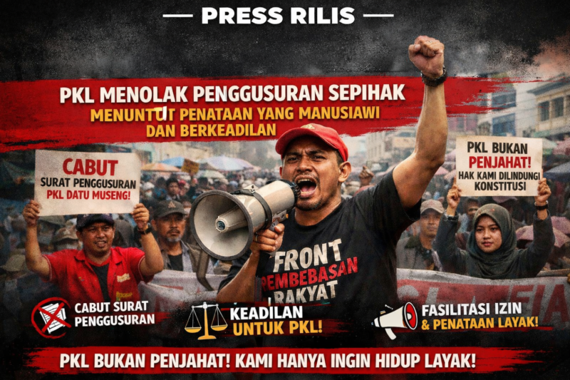 anatomikata.co.id, Makassar – Aliansi Asosiasi Pedagang Kaki Lima (PKL) Datu Museng – Maipa – Gatotsubroto menyatakan sikap tegas menolak segala bentuk penggusuran sepihak yang dilakukan tanpa dialog, tanpa solusi, dan tanpa relokasi yang layak terhadap Pedagang Kaki Lima di Jalan Datu Museng-Maipa- Gatotsubroto, Kecamatan Ujung Pandang dan Kecamatan Tallo, Kota Makassar.